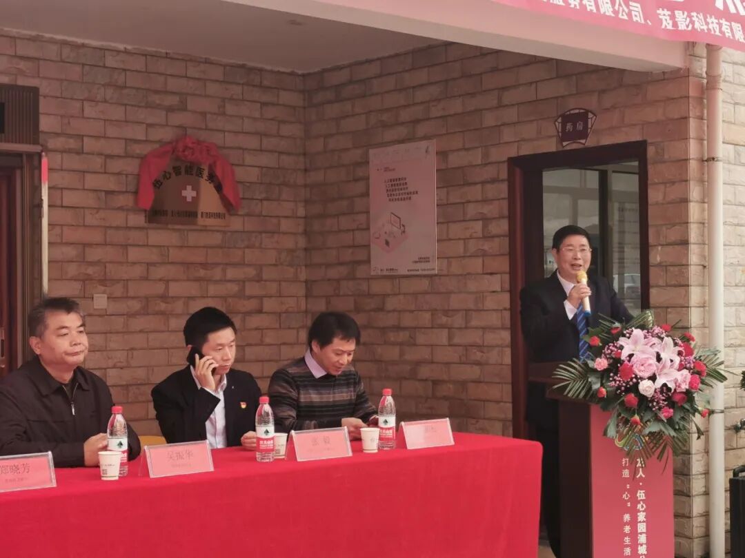 浦城县民政局副局长吴振华、浦城县卫生健康局郑小芳、民政局宁主任,浦城中医医院张毅主任、福建省伍心养老服务有限公司三位代表、芨影科技有限公司运营总监孟思君 、厦门胜芨科技有限公司总经理邱和松等莅临现场参加了本次启动仪式。